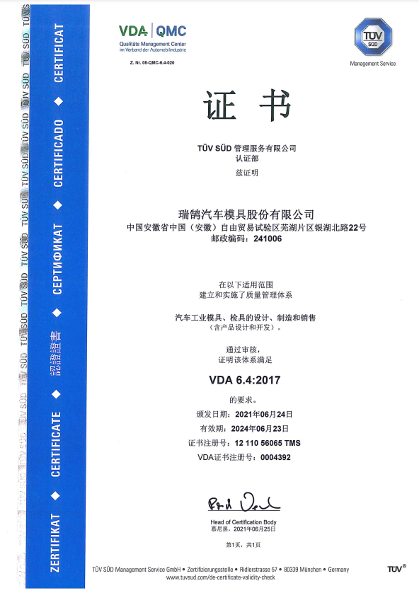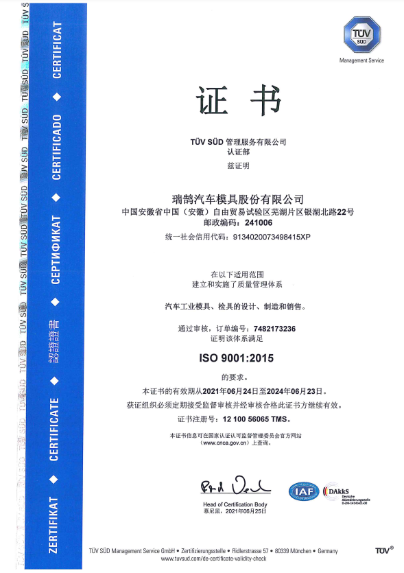 ????????瑞鵠汽車模具股份有限公司成立于2002年3月,坐落于中國(安徽)自由貿(mào)易試驗(yàn)區(qū)蕪湖片區(qū)銀湖北路 22 號,股本數(shù)18360萬,公司的主營業(yè)務(wù)為汽車沖壓模具、檢具及焊裝自動(dòng)化生產(chǎn)線的開發(fā)、設(shè)計(jì)、制造和銷售,主要產(chǎn)品有沖壓模具(覆蓋件模具、高強(qiáng)板模具)及檢具、焊裝自動(dòng)化生產(chǎn)線、一體化鋁壓鑄零部件,為國內(nèi)少數(shù)能夠同時(shí)為客戶提供完整的汽車白車身高端制造裝備、智能制造技術(shù)及整體解決方案的企業(yè)之一。